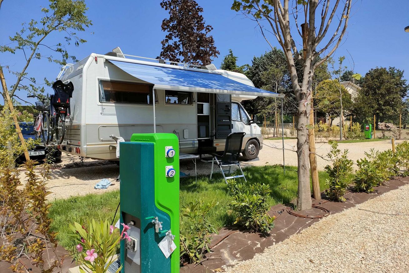 Piazzola camper o roulotte, con energia elettrica (12A), acqua, scarico reflui e piazzola per lavaggio camper gratuita. Disponibili bagni e docce con acqua calda, lavello per le stoviglie. Possibilità di utilizzare tendalino o piccola tenda.